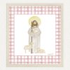 Esta lámina con nuestra virgencita hace pareja con la oración del Ave María del mismo color, ambas decoradas al rededor con una franja de cuadros vichy, ideal para decorar una habitación infantil. Disponible en varios colores diferentes.