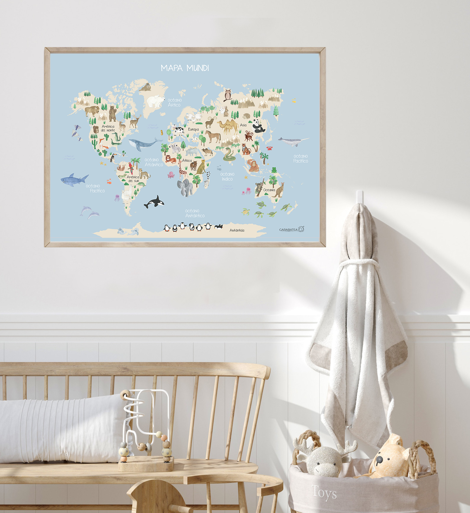 Lámina de acuarela original pintada a mano por Bea de Garabatea design. Forma parte de la serie infantil “mapas” compuesta por varios diseños diferentes.