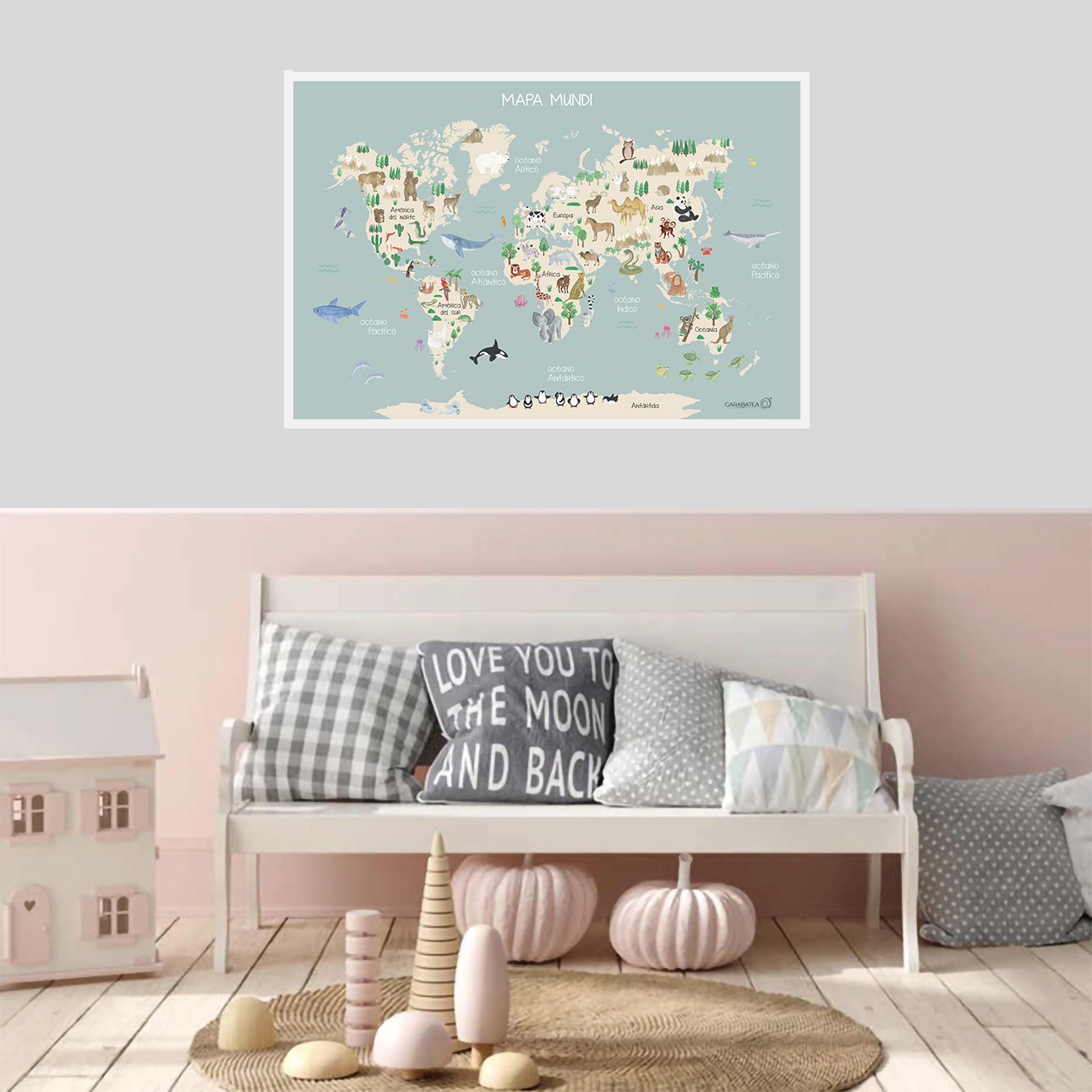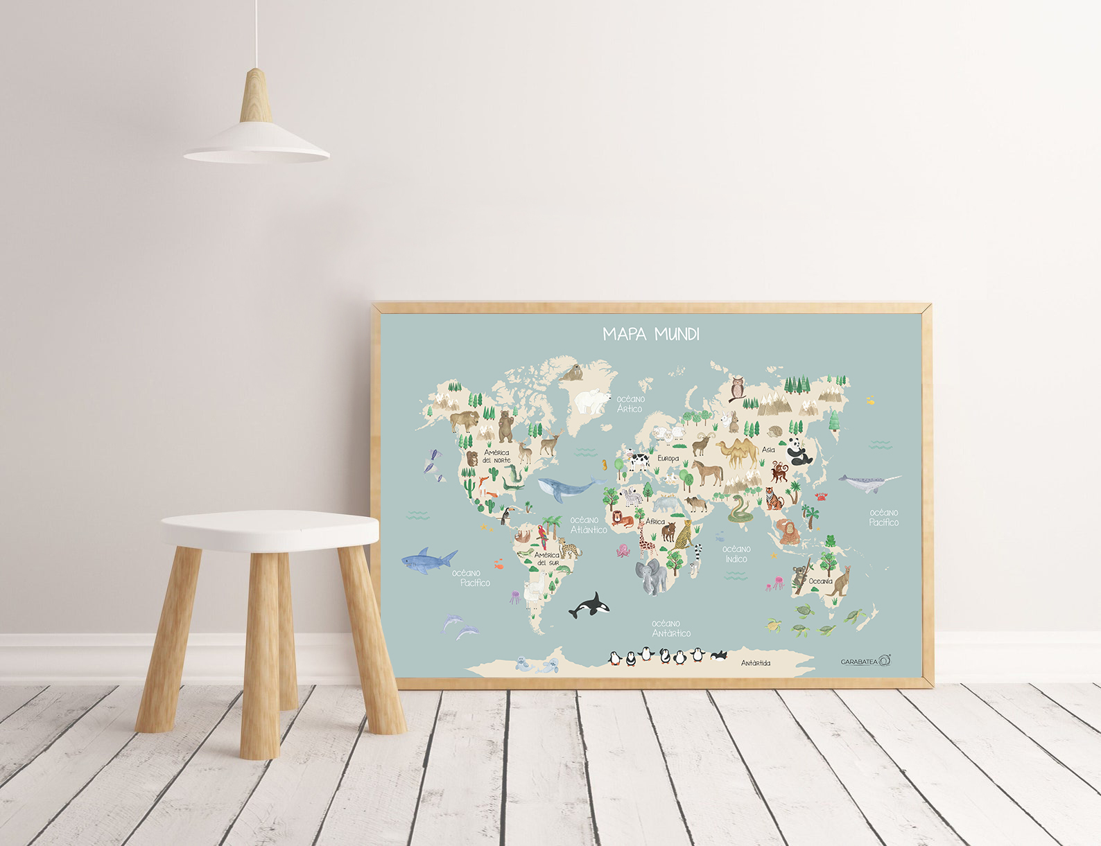 Lámina de acuarela original pintada a mano por Bea de Garabatea design. Forma parte de la serie infantil “mapas” compuesta por varios diseños diferentes.