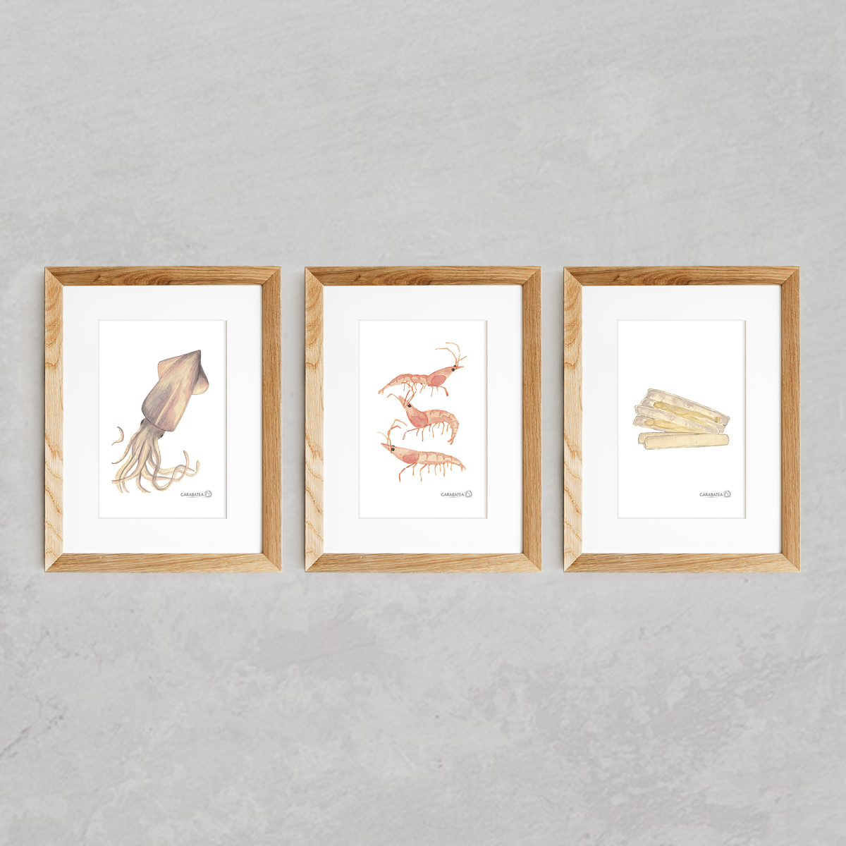 Lámina de acuarela original pintada a mano por Garabatea design. Forma parte de la serie «Marisco» compuesta por varios modelos diferentes.