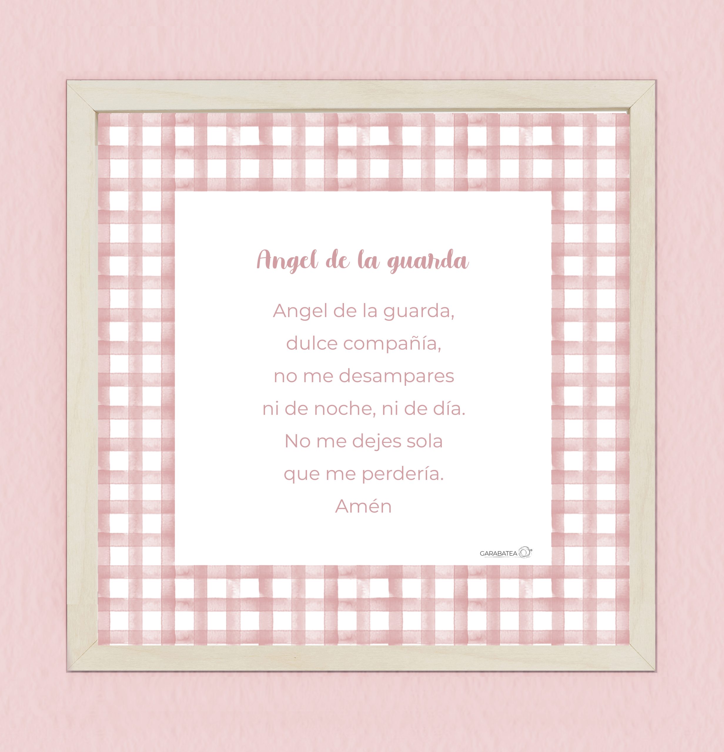 Esta lámina con la oración del Ángel de la Guarda hace pareja con nuestra simpática angelita del mismo color, ambas decoradas al rededor con una franja de cuadros vichy, ideal para decorar una habitación infantil. Disponible en varios colores diferentes.