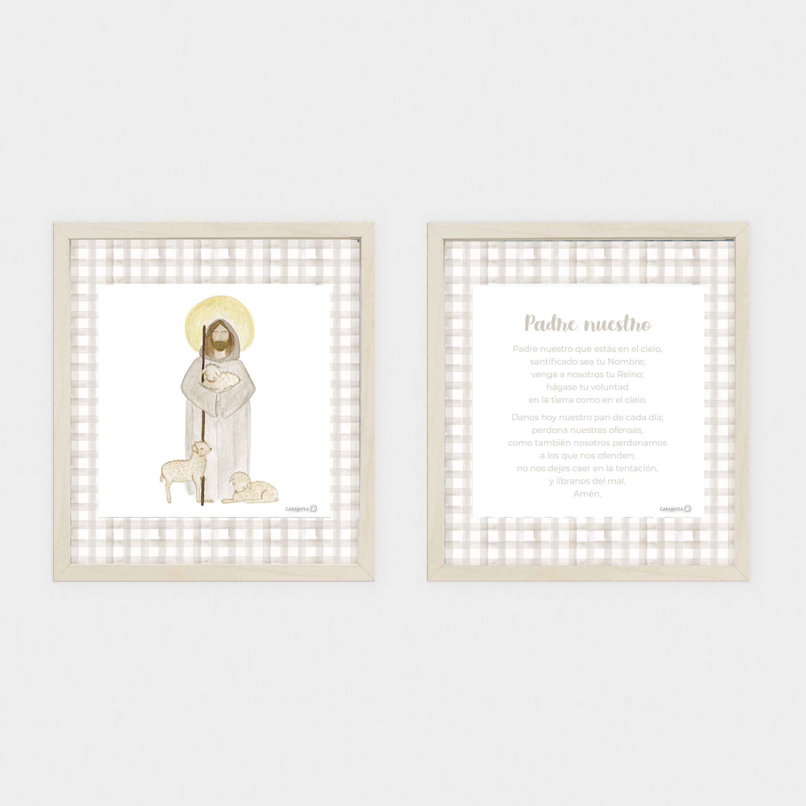 Lámina de acuarela original pintada a mano por Garabatea design. Forma parte de la serie de oraciones infantiles compuesta por varios modelos diferentes.