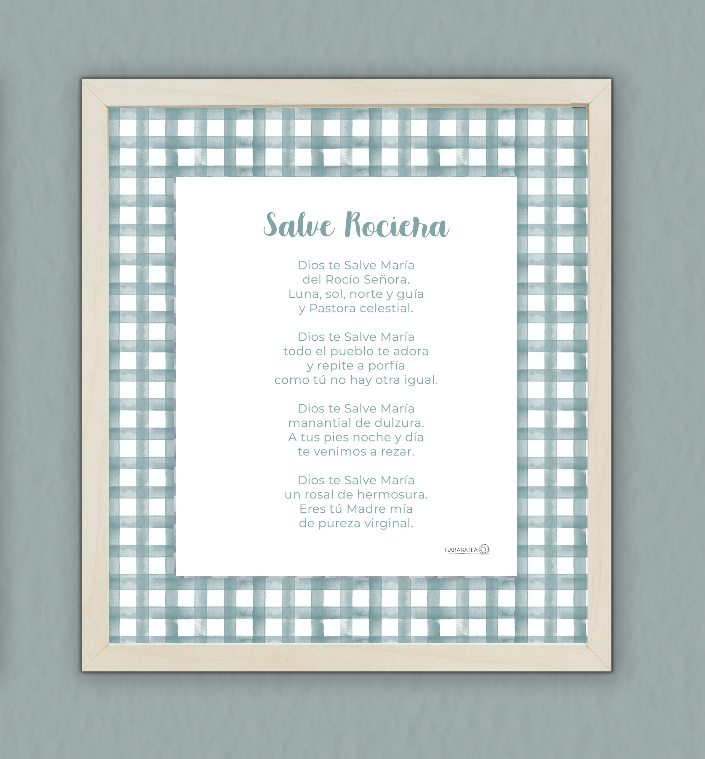 Esta lámina con la oración del Ave María hace pareja con la lámina de la virgencita del mismo color, ambas decoradas al rededor con una franja de cuadros vichy, ideal para decorar una habitación infantil. Disponible en varios colores diferentes.
